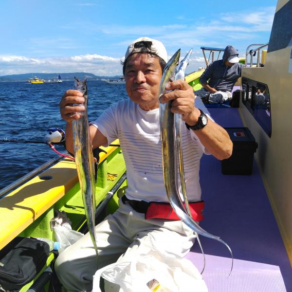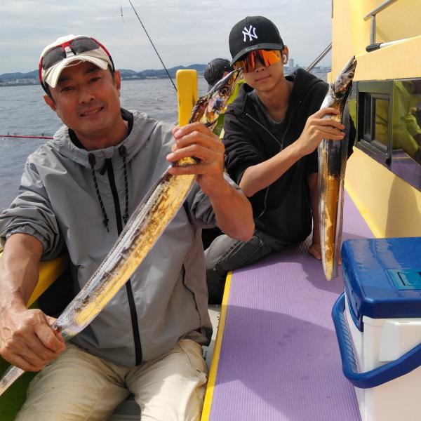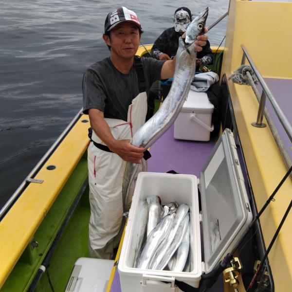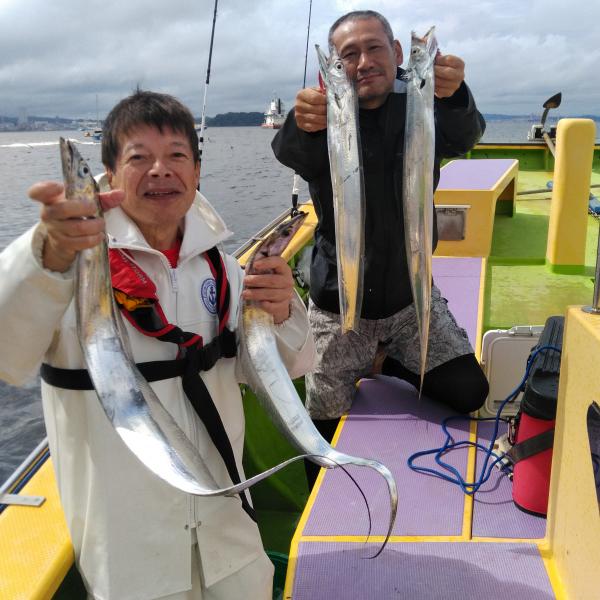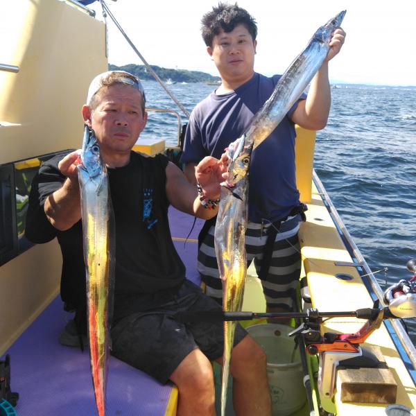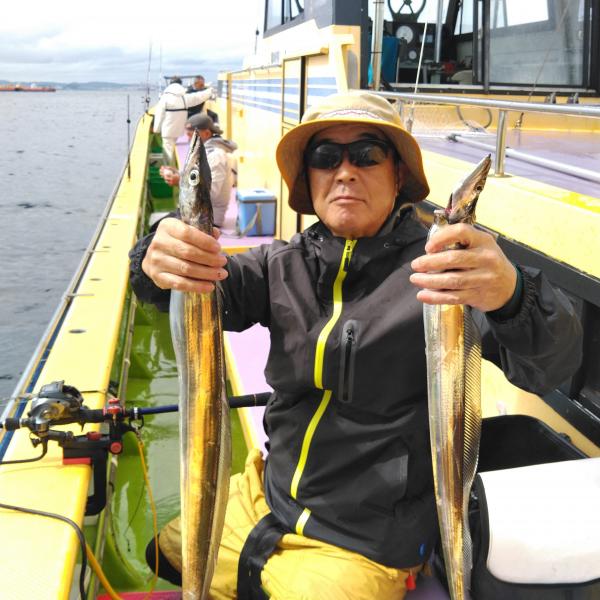 2025 年 9 月 14 日公開 【釣果情報】タチウオ船 #釣果情報 タチウオ 大きさ 70-119cm 匹数 2-13匹 釣り場 走水 水深 60m 水温 潮色と流れ 風向きと強さ 波高 天候 船長コメント 朝から半端な南風が吹いてましたが、ポイント周辺は風影で問題無しです。開始から反応も見れてアタリ出ましたが、いまいち活性上がらずポツポツ食い。反応は終日確認できましたが、ダラダラ食いの一日でした。ドラゴン級混じり大型混じりでした。 【船上での喫煙について】 座席での喫煙は禁止です。 喫煙場所は、船尾の帆柱下と真ん中通路のみになります。 ゴミは、各自お持ち帰りをお願い致します。