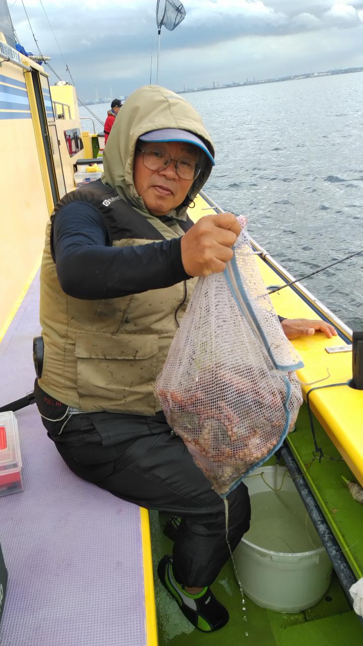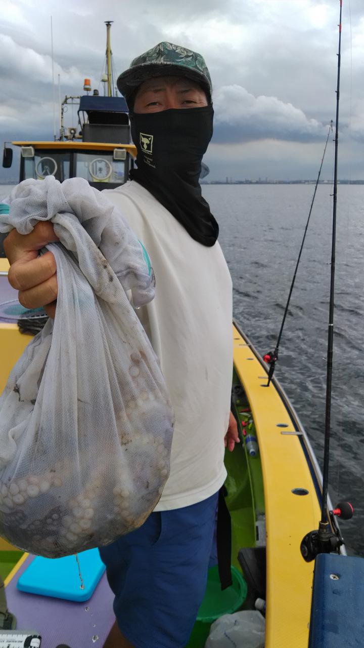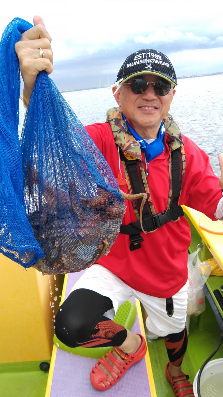 船長コメント 5名様で軽く片舷で出船です。朝から曇り陽気で久しぶりに過ごしやすい日並みでした。 スタートからボツりボツり拾えて小人数ですから配当率よく、11.11.8.8.2杯でお土産に。東京方面に雷注意報が出て12時半に撤収となりました。 【船上での喫煙について】 座席での喫煙は禁止となりました。 喫煙場所は、船尾の帆柱下の通路と運転席前の通路のみになります。 【ゴミについて】 各自ゴミはお持ち帰りください。
