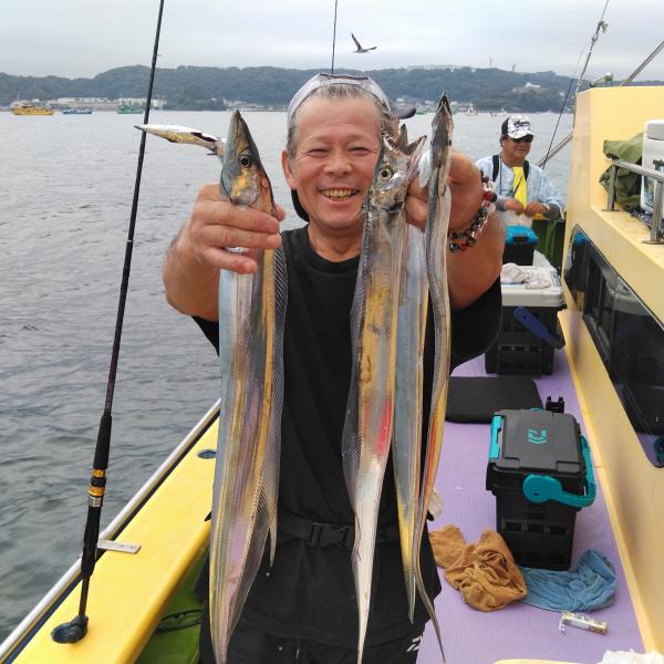 2025 年 10 月 12 日公開 【釣果情報】タチウオ船 #釣果情報 タチウオ 大きさ 70-100cm 匹数 6-20匹 釣り場 走水~観音崎 水深 50-60m 水温 潮色と流れ 風向きと強さ 波高 天候 船長コメント 朝一番からアタリ活発で連発する方も居て好調にスタート。日中はペースダウンしましたが、反応は健在でツ抜けの方多く最後まで楽しめました。 明日は台風接近で出船中止です。 【船上での喫煙について】 座席での喫煙は禁止です。 喫煙場所は、船尾の帆柱下と真ん中通路のみになります。 ゴミは、各自お持ち帰りをお願い致します。