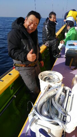 船長コメント 今日も、羽田沖から。今日も、良型&ムッチリボディーの太刀魚でしたが、いまいち盛り上がりに欠ける食いだったので、川崎沖へ。こちらは、豪華絢爛反応で、あたり活発。手慣れた方々は、入れ食い状態。昼頃には、依然として反応よかったけれども、当たり方が悪くなったので、羽田に移動して、ちょろっと追加して終了になりました。