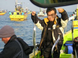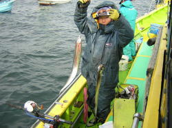 最近、僚船の状況は、連日好調果が続いているので、今日はどれだけ釣れるかな?なんて期待して出船。でも、上げ潮時に好調なようで、今日は若潮であまり潮が効かない状態。 トローンぐらいしか流れていなく、おまけに風と潮が反対だから、余計効かない。反応はいつ入れ食いになってもおかしくないのだけれども、ポツン・・・・・・ポツン・・・・という食い方でした。途中北風が強くなり、風影から移動できなくなりましたが、その後もあっちへふらふら、こっちへふらふら移動しましたが、後半は厳しい展開でした。 上げ潮が効く日がいまのところオススメですね。 |