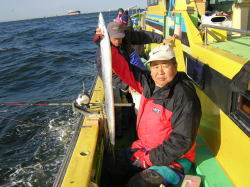 | 今日から3連休の方も居らしゃる様で16名のタチウオファンで出船となりました、ありがとう御座いました。 天候にも恵まれて午前中はアタリも活発、昼前から上っ側の下げ潮が出て食いが落ちましたが午後もポチポチ食い続きました。 今日は秋口釣れるような小ぶりもチョット交じったね、このところ良型揃いだったせいかやけにちっちゃい感じしました。 明日は冬晴れで北風が強い予報ですから、明後日の出漁がお勧めです。 でも明日も出ますよ。 | |||||