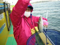 久里浜沖では何ヶ所か転々としましたがどこも空振り! この頃から今シーズン定番の南風がそよそよ吹き出して海もポチャポチャ、ウロウロしててもしょうがないのでお客様には申し訳ないんですけど小ぶり(20センチ前後)のポイントで勘弁してもらいました。 陸は春めいて来ましたが海はまだだね、もうチョットの辛抱かと思ってます。