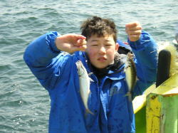 春の嵐って言うか季節の変わり目って言うか、今月は休みばかりで出船日少くないね。 お蔭様で今日は何とか出れました。船頭も陸に上がったカッパが続いてますから沖へ出てもさっぱり模様が分かりません、アルバイトの日曜船頭さんよりチョットましかな?ってとこです。 それでも今晩のおかず程度は釣れましたから魚の食いも上向いてきたって事ですかね、水温がまだ低いからこれから良くなると思ってます。 釣り人6人で(16・15・14・13・13・11匹)と皆さん差がなく平均に釣れました。 ただ15匹の人は釣り暦はあってもアジ釣りは初めてだそうで、他の人にはもうチョット頑張ってほしかったです。ここ数年アジは好漁でしたから常連さん緊張感抜けちゃったの?10匹・20匹をひっしに釣った年もあったでしょ、釣りは緊張感と集中力がないと上達しません。 でも楽しく遊べればそれでいいんだけどね、日並みの良い日に遊びに来て下さい。