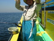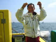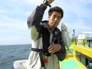 それでも皆さん10匹以上の良型のアジはゲット、13時頃まで粘りましたが好転の兆しはなく、昨日は南下しましたが今日は北上して中の瀬方面へ移動しました。