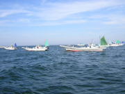 スタートからアタリが出て良い調子!と思ってるうちに何やらおかしな雰囲気に、さっきまであちこちの船で上がっていたアジの姿が遠くなりました。 移動する船もあって到着早々にしぼみかげんです。