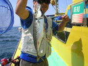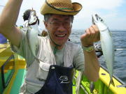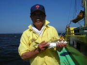 肝心の魚の方ですが午前中は中ッパ~30センチ級がポツポツ食いました。 全体的にはコンスタントな人とポツポツの人と全々ダメな人と居て、貸し竿初心者の人も居たのでしょうがないかなと思いました。 ウロチョロしながら13時頃まで観音崎に居ましたが0~20匹、良型のサバも交じって常連さんはお土産に成りましたが初心者の人は「えっ!・・・まだ釣ってないの?」ってビックリ!時間も無いので中の瀬へ北上しました。