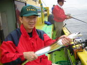 今日初出船でしたが、初日から大漁でした。朝から絶好調!トリプル・ダブル当たり前!時間が経つに釣れて、ポツポツの食いになりましたが、一日通して好調でした。帰りがけには、また大きな反応があったので、潮周りが大きくなる今週末は、期待が持てますね。