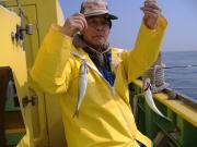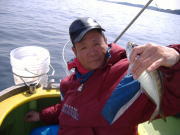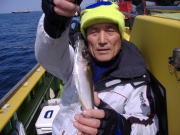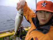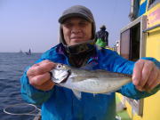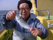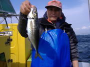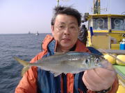 アジ22~38センチ・6~22匹、久里浜沖70メートル。 昨日と違い今日は暖かくていい陽気でした。 相変わらず速い潮には苦戦しますが、タナさえ取れれば良型のいいアジが食いました。 特に午前中の下げ潮が良かったね、30センチ級の良型がそろいました。 午後からは南風が出て海もぽちゃぽちゃしたので今イチ盛り上がりませんでしたが、一時の食い渋りは完全に脱出した模様です。 陽気も良くなりこれからって感じですよ。 平日出漁予定の方は前日の夜8時迄にお電話宜しくお願いします。