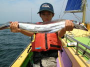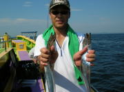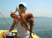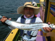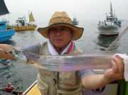 今日はタコがお休みになってしまったので、タチウオに行って来ました。 朝一番は大貫沖のタナ10メートル前後からスタート。 反応も適当に見れてアタリも活発にありましたが、上手く食わせないとエサだけ取られる回数も多かったですねぇ。 浅場ですからライトタックルがお勧めです。 午後から金谷沖に移動しましたが、タナが20~40メートル。 深くなった分反応も広範囲で一流しで終了しちゃいました。 アタリはコンスタントに有りますから、いかに食わせるかはお客様の腕の見せ所ですよ~。 季節限定ですから、是非ライトタックルで攻めてみて下さい。 それからタコ釣りはそろそろ一休みしようかと思ってます。 タコ釣りファンは今週末の出漁がお勧めです。