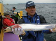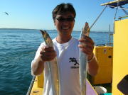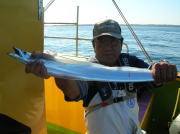 65~95センチ・3~14本、下浦沖タナ80~90メートル。 今週は船の定期検査や突然登場した台風で連日休業しちゃいました。 今日は台風一過の秋晴れでウネリが有った以外は凪でいい陽気でした。 タチウオは反応は見れるんですけど直ぐ移動しちゃうんだよねえ?何が気に入らないんだか何本か釣れると居なくなっちゃうの繰り返しでした。 それでも何とかポツポツ釣れて、塵も積もれば山となる作戦で頑張りました。 台風通過のシケ後でウネリも残ってた割には反応が見れたので、海が落ち着けば上向き間違いなし!でも明日は鬼門の南西風が吹く予報ですから水曜日に期待したいと思ってます