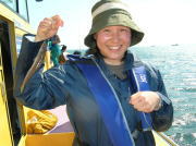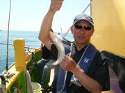 シロギスは、風をよけて、西側攻めました。その為、いつもより、小型が多かったですが、食いはよく、2番手64匹でした。風も波も、ほんのちょっとの間で絶好の釣日和になりました。アナゴは、小型~中型主体でしたが、アタリ多く、好調でした。途中、クラゲの邪魔がなければ、もう少し釣れたと思います。残念!