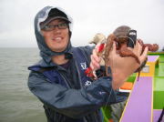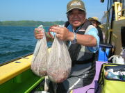 アナゴは、良型は出ませんでしたが、ポツーーん・ポツーーーーーんの食いでしたが、我慢我慢で、数を稼ぎ、16本2名様。残念ながら、1名様型みずでしたが、平均8本と何とかおかず程度はキープできました。