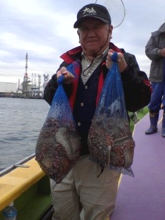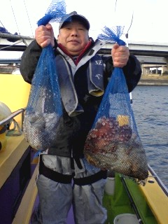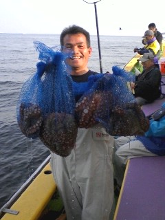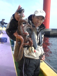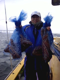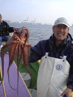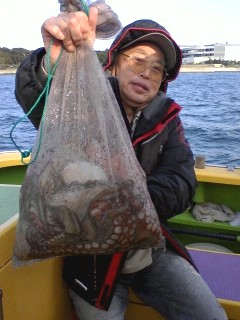 多忙の為更新遅れてすみませんm(_ _ )m。今日も木更津方面から攻めてみました。スタートからポツポツタコと遭遇していい感じでしたが、南西風が徐々に強くなって海は大シケ(×;)。15メートルの強風になっちゃって昼前に風陰になる横浜方面に移動→しました。こうなると出来るポイントも限られて期待薄(--;)。全員ゲットのお凸無しだったので、13:30で早上がりとなりました。