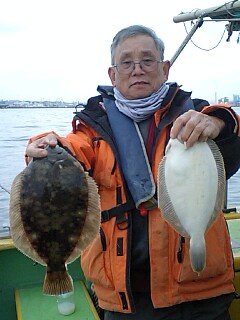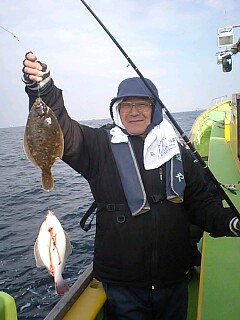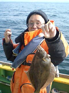 大潮だから、流れが速く、道糸が船の後ろの方へ(;_;)こんな時は、潮の変わり目にパタパタと釣れること多いので、期待してたけど、ハズレ~(>_<)1日ポツ~~~~ポツ~~~~でした。(\\\'-^*)/船中10枚で、30センチ以上は6枚。アカメ・シロギス・マダコが混じりました。今日は、今シーズン最大の46センチ登場\(^_^)/40センチオーバーは、今シーズン7枚目です。